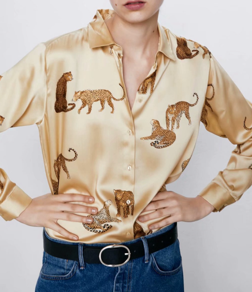 Leopard-Print Satin Shirt